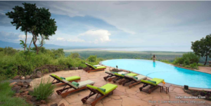 Luxury lodges perched along the crater rim offer: